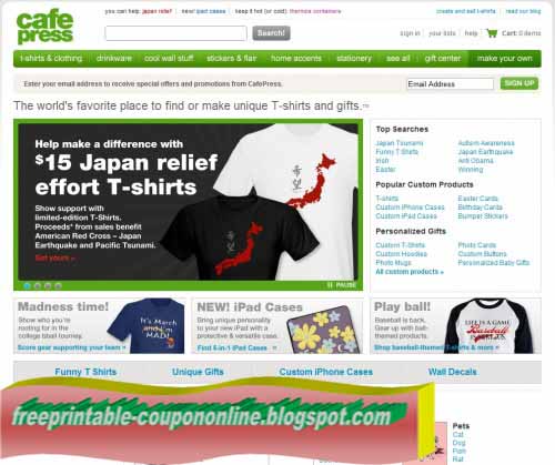 Quickly search for topics of interest on CafePress and find the content you need. Then, we research various online coupon sites to find the corresponding promotional codes. You will find a variety of promotional offers ranging from free shipping to a discount of $30. Join the CafePress mailing list to take advantage of peeping and exclusive sales activities. Promotional coupons are sent directly to your inbox.